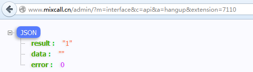 調(diào)用實(shí)例:http://www.mixcall.cn/admin/?m=interface&c=api&a=hangup&extension=7110