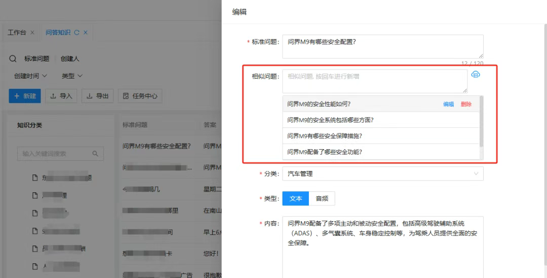 FAQ智能擴寫:上傳基礎問答對,大模型一鍵生成標準問答庫,自動補充相似問法、擴展場景話術,5分鐘完成相當于人工40小時的整理工作,大幅提升知識構建效率。