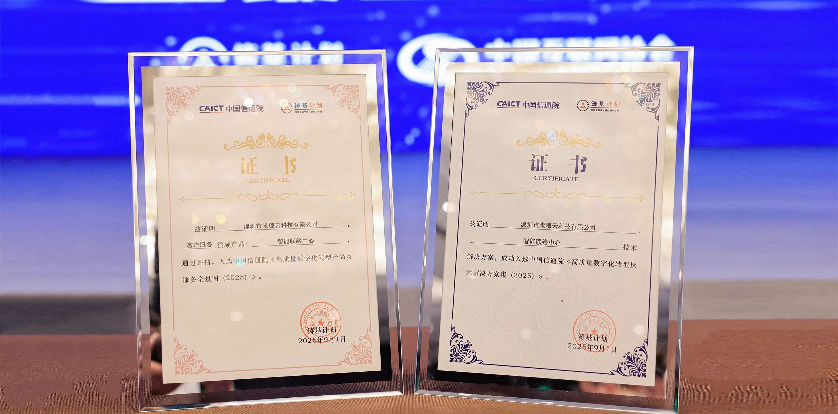 近日,中國信通院正式發(fā)布2025年《高質(zhì)量數(shù)字化轉(zhuǎn)型產(chǎn)品及服務(wù)全景圖》和《高質(zhì)量數(shù)字化轉(zhuǎn)型技術(shù)解決方案集》等多項(xiàng)工作成果,米糠云憑借過卓越技術(shù)與豐富行業(yè)實(shí)踐,公司副總經(jīng)理受邀出席盛會(huì),其創(chuàng)新產(chǎn)品“智能聯(lián)絡(luò)中心”更成功入選“云服務(wù)”“客戶服務(wù)”“通用辦公”三大關(guān)鍵領(lǐng)域和技術(shù)解決方案。